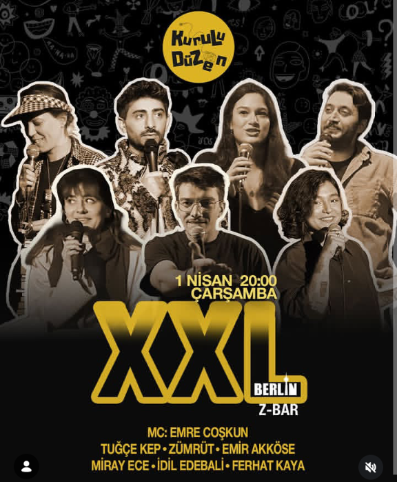 Kurulu Düzen Comedy – („Etablierte Ordnung„) – kommt jeden Monat für euch in der Z-Bar zusammen! Jede/r einzelne von ihnen wird an diesem Abend mit seinem eigenen Style die Bühne rocken und ihr werdet nicht genug vom Lachen bekommen! Zusätzlich wird unsere Show von unserem Host begleitet, der die Energie des Abends auf die Spitze treiben wird. Lasst uns gemeinsam einen unvergesslichen Abend verbringen!